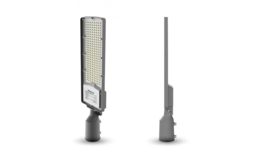 Luminarias de alumbrado público LED PROLITE de alta eficiencia línea STREETLIGHT. Diseño minimalista y elegante. Con un alto rendimiento lumínico de 140 Lm/Watt proporcionan mucha más luz con menor consumo de energía. Equipan lente de apertura 60° x 130° proyectando luz uniforme sobre la superficie iluminada en toda su extensión. Los drivers de la línea PROLITE mantienen la luz uniforme siempre, sin importar las posibles variaciones, en un rango desde 85-320VCA. A su vez equipan un filtro de corrientes repentinas dadas por descargas atmosféricas de hasta 10KV.