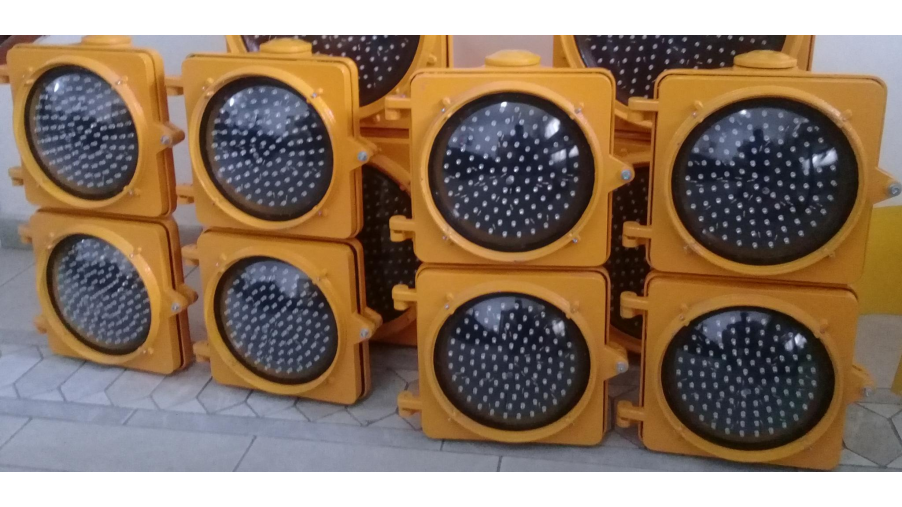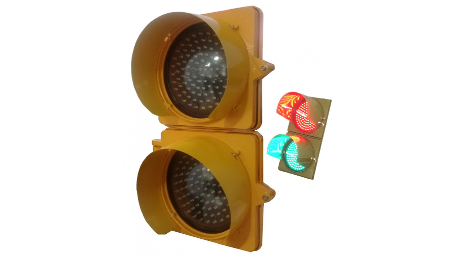 Semáforo de aluminio multiled de 2 ópticas de 200mm multiled de alto brillo.