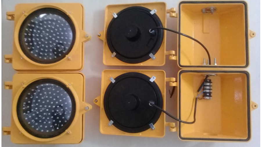 Semáforo con carcasa de aluminio de 2 módulos para ópticas de 200mm multiled de alto brillo.
