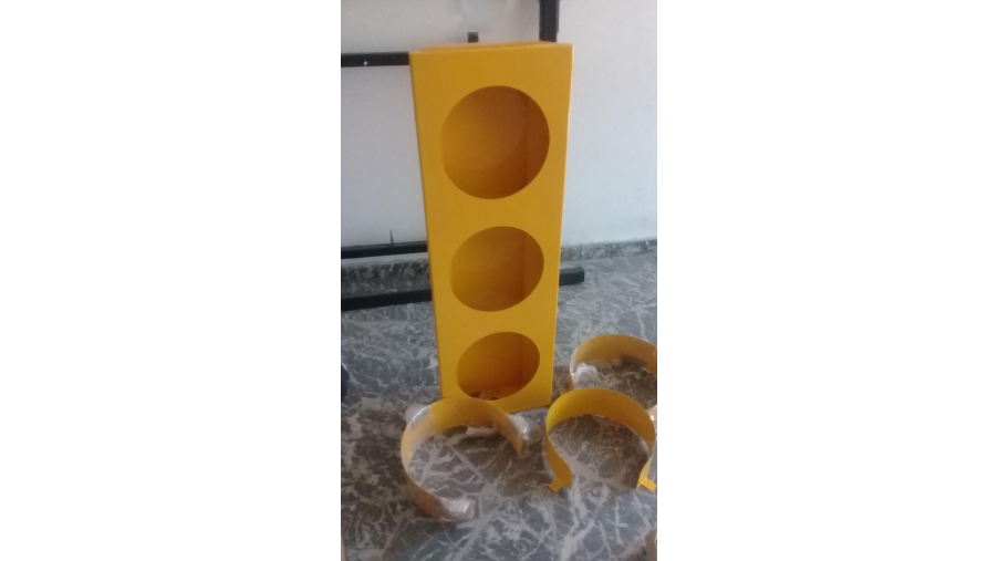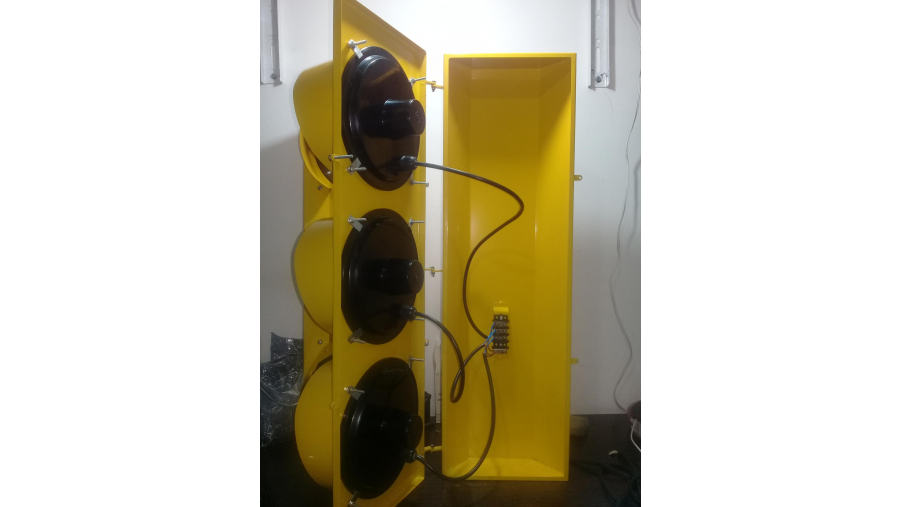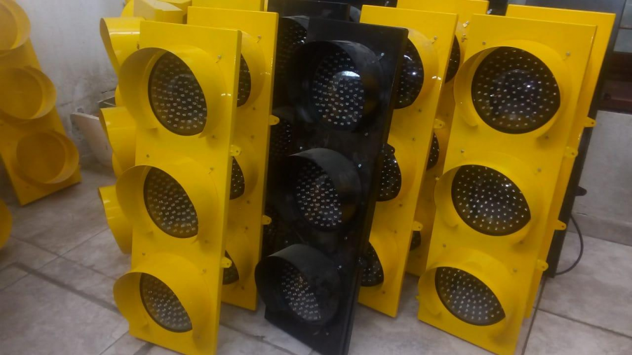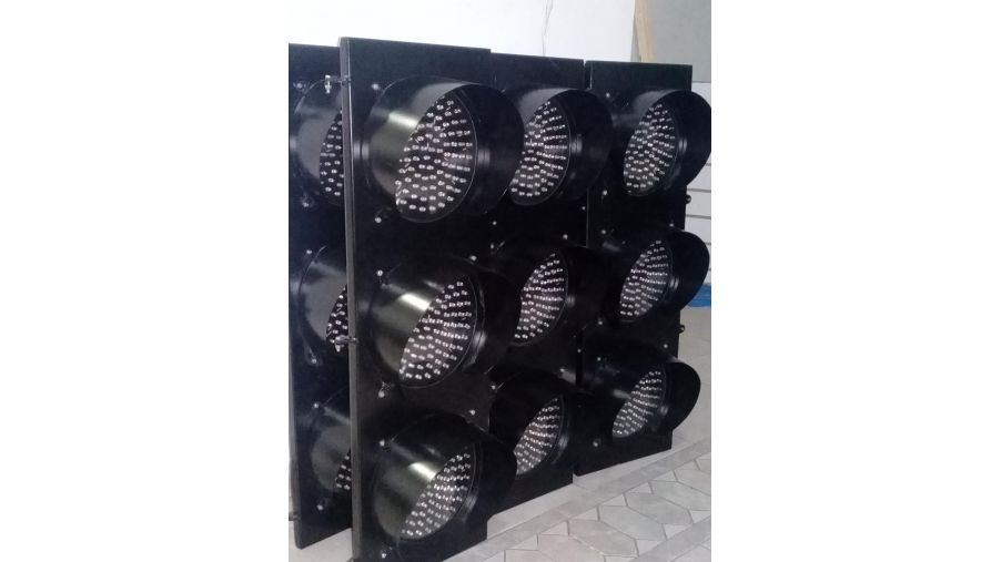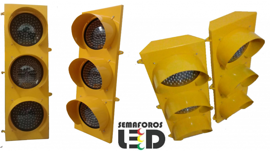 Semáforo con carcasa de chapa de 1 módulos rectangular en la que se sujetan las 3 para ópticas de 200mm multiled de alto brillo.