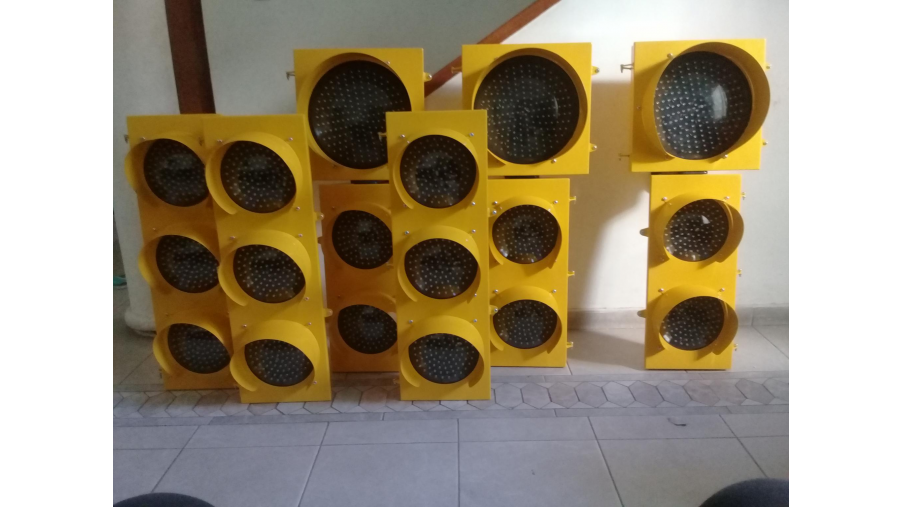 Semáforo con carcasa de aluminio de 3 módulos para ópticas de 1 de 300mm y de 2x200mm multiled de alto brillo.